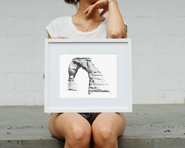 As a pen and ink illustration, the absence of color allows the form of Delicate Arch to stand on its own. The result is a piece of Arches National Park wall art that feels timeless and grounded rather than decorative or overly stylized.